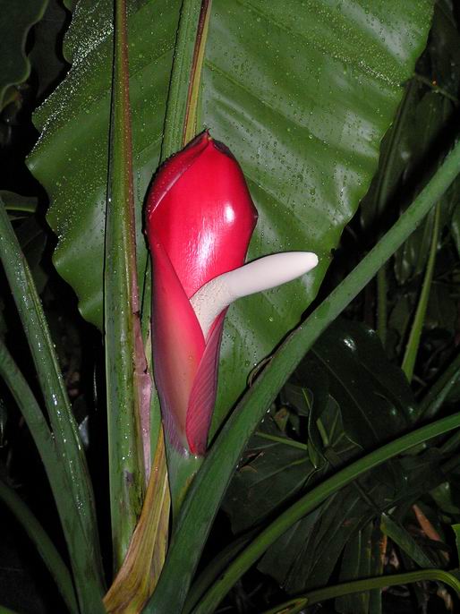 Russ Hammer received this request from David Janas at the New York Botanical Garden. He sent it to me and I contacted David. David is trying to help a garden visitor but so far, we're stumped! Here's the message and the photo. Do any of you recognize this beautiful spathe?" A visitor to the NYBG conservatory showed me a photo of a flower they saw in Hawaii - it was clearly a Philodendron of some kind but P. insigne was all I could think of to say, but it had a bright red spathe inside and out, with a pure white spadix that was well enclosed except for the very upper portion. The whole infloresence had a very narrow appearance. The leaves are not very clear in the photo but appear to be in a fairly dense rosette and have rather ruffled and wavy edges. The visitor was satisfied with Philodendron, but now I am curious and I can't seem to find a good source to help me identify it."If anyone knows this beautiful plant please let us all know and I'll send Dave the link.Steve Lucas www.ExoticRainforest.com **************************************