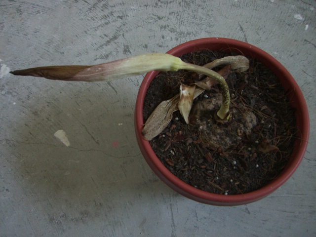 I got it a couple of months ago, and it started growing fine. It was, in fact an inflorescence, and had been developing just fine, albeit slower than I had experienced with other amorphs. Unfortunately, something happened and it had died (the flower, not the tuber which I dug back out a bit to see it in tact but smaller from producing the flower). Does anyone have any hints as to what had gone wrong? I personally don't understand how it manage to get that far in the inflorescence only to die with no known cause. Any thoughts about this would be appreciated, and how the next time I can do something to ensure a more successful bloom.