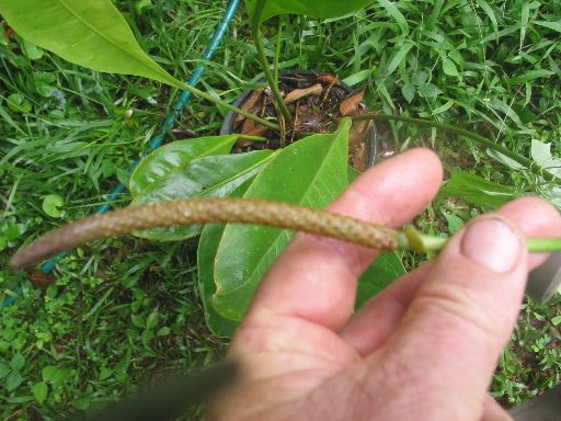 Here are some pics of an unusual Anthurium spp. I am growing . The stem creeps along the ground and branches. Infloresence is much taller than foliage , I missed the spathe . Leaves are approx 30 cms long on petioles about the same length. I halved the picture size , but can post larger ones on my picasa later . Any ideas of name for this sp. ? It is not common and may have been introduced into Aus. by David Burnett during the big Aroid Show in the '80s. Or brought in by some Orchid growers . Michael Pascall, Sell your car for just $40 at CarPoint.com.au It's simple! |