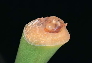 FOT. 3. WYSIĘK BAKTERYJNY NA SZYPULE KWIATOSTANOWEJ ANTURIUM