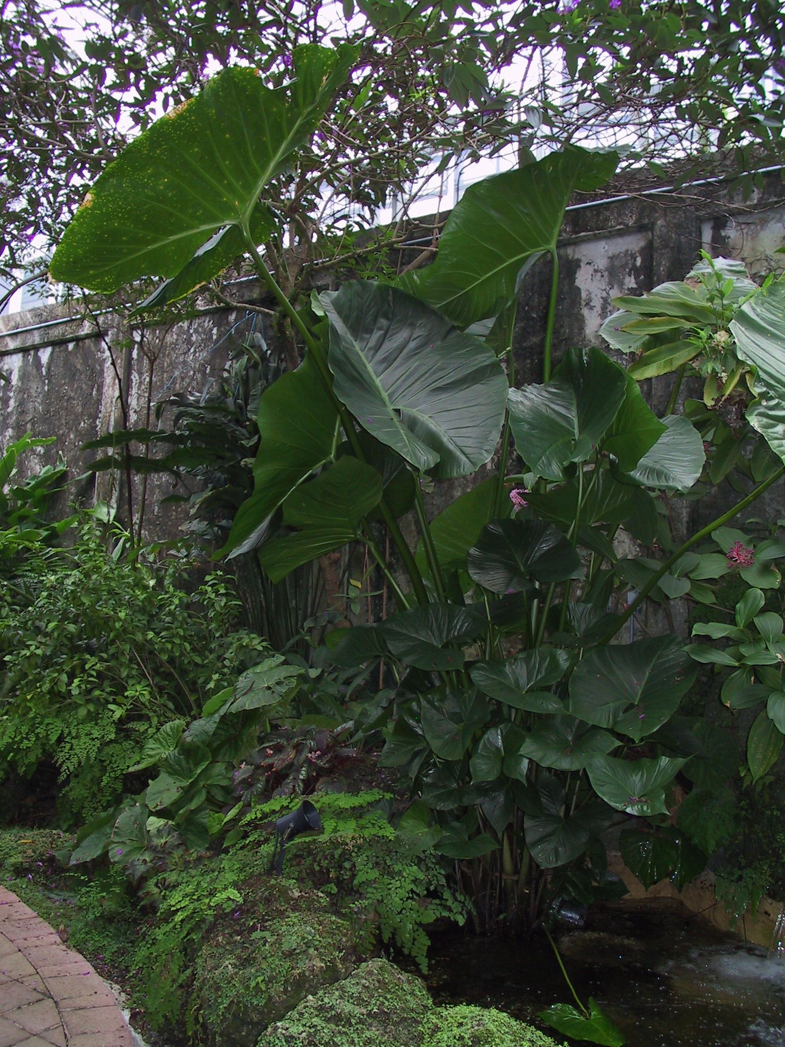 I wish I knew the name of the ginger that was to the right of the water fountain there also, it is long, tall anmd has many many leaves on it. It grows out into the walk way almost. If anyone know I would appreciat it. lol thanks