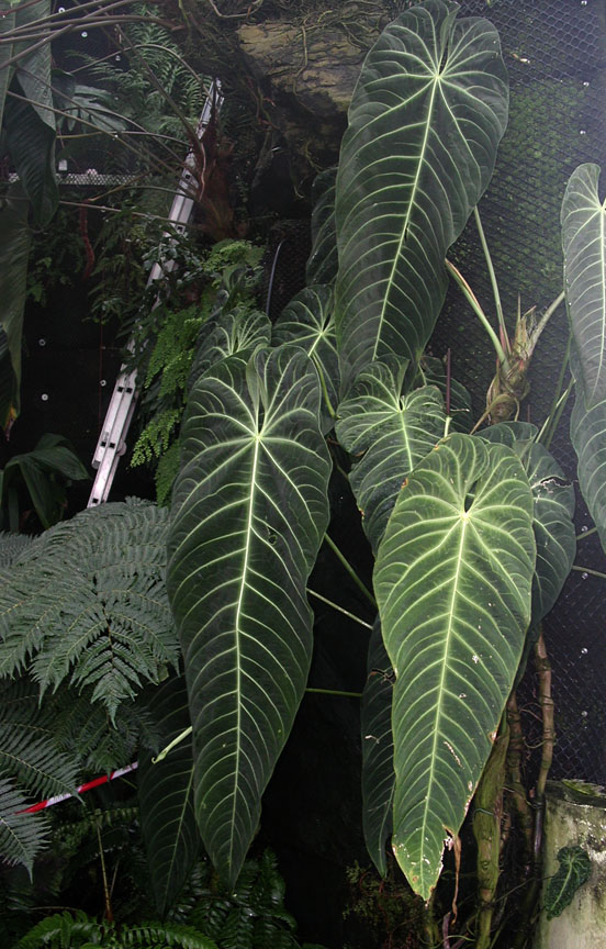 Just this morning I was checking Tom`s work on A. costatum C. Koch and Bouche from the Cordillera de la Costa in Venezuela, what a plant! Leaves with a blade 123 cm. by 78 cm.! Tom`s photo on pg. 23 of Aroideana Vol. 9 (1-4) of 1986 shows a leaf that just MIGHT be close to the plant in Stockholm, but I`ll leave Tom to comment on this possibility!