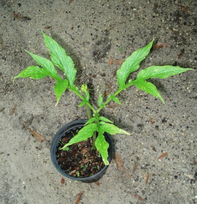 the plant is pictured growing in a 1-gallon pot and there is approximately a