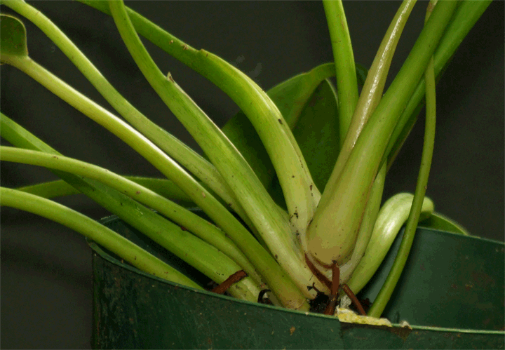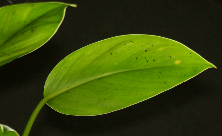 I've had this Philo for at least three years, likely more, and have no idea what it might be or where it originated. I've taken the plant to Dr. Croat in St. Louis and he appears to believe it is fully grown but has no idea what it might be. I've also sent these photos to several aroid botanists with no results. Both the blades and the pot in the photo are approximately 15 cm (6 inches) and the entire plant is small. I grow it in moderately bright light but have never seen an inflorescence. I've included photos of both the adaxial and abaxial blade surfaces (upper and lower), the petioles and stem. If any of you grow it or know where it originated I would appreciate the info. Thanks! Steve Lucas www.ExoticRainforest.com |