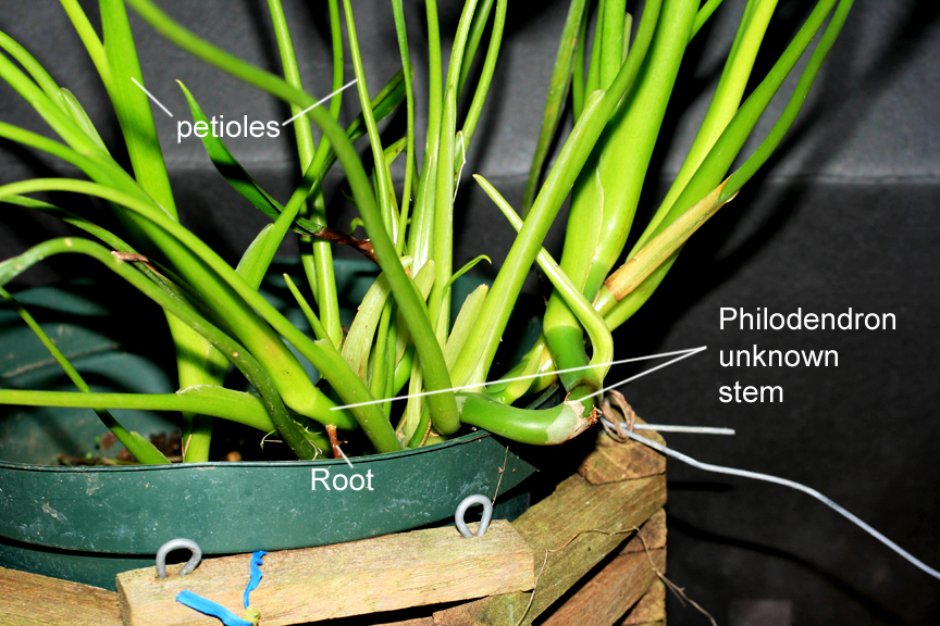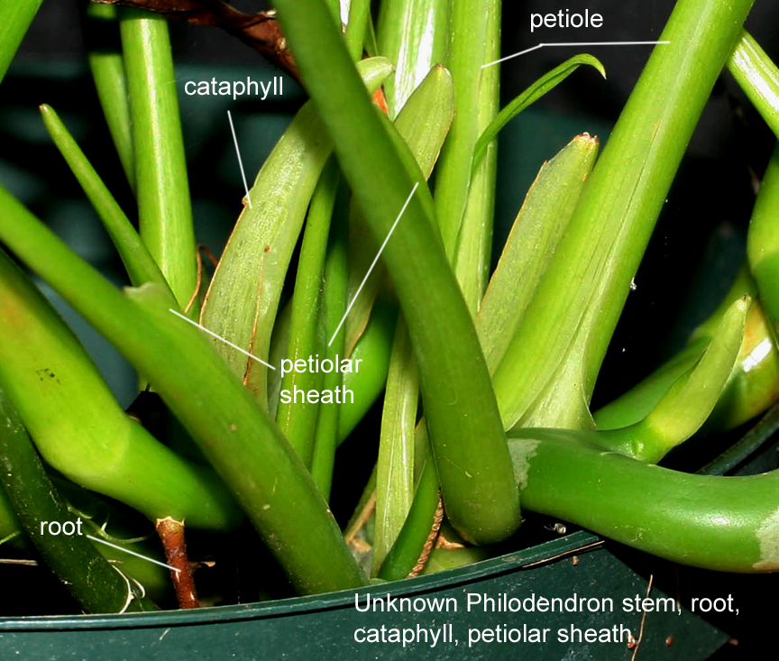 Another apparently unknown Philodendron. I received this small Philodendron from Brian Williams almost exactly two years ago. Brian tells me he acquired it from John Banta.I'm trying to learn anything possible about this Philo so if you have grown it or have seen the inflorescence (especially if you have a photo) I'd love all the info possible. The petiole is terete near the apex (top) but there are are striations on the flattened adaxial surface near the base, the blades have not grown larger than 8 inches and the petioles are around double the length of the blade. The widest point on the blade is barely 1 inch. The young blades emerge from a petiolar sheath but there are also cataphylls visible in the photos. The plant appears to grow as a clumping form but I have no idea if it is an epiphyte or terrestrial.Unless this is simply a very slow grower this one may also qualify as one of the smallest Philodendron species known. I have zerocollection data but would like to know where it originated.For size comparison, the pot is 8 inches across.If you have it or know anything about it please post the information here.Thanks!Steve Lucaswww.ExoticRainforest.com |