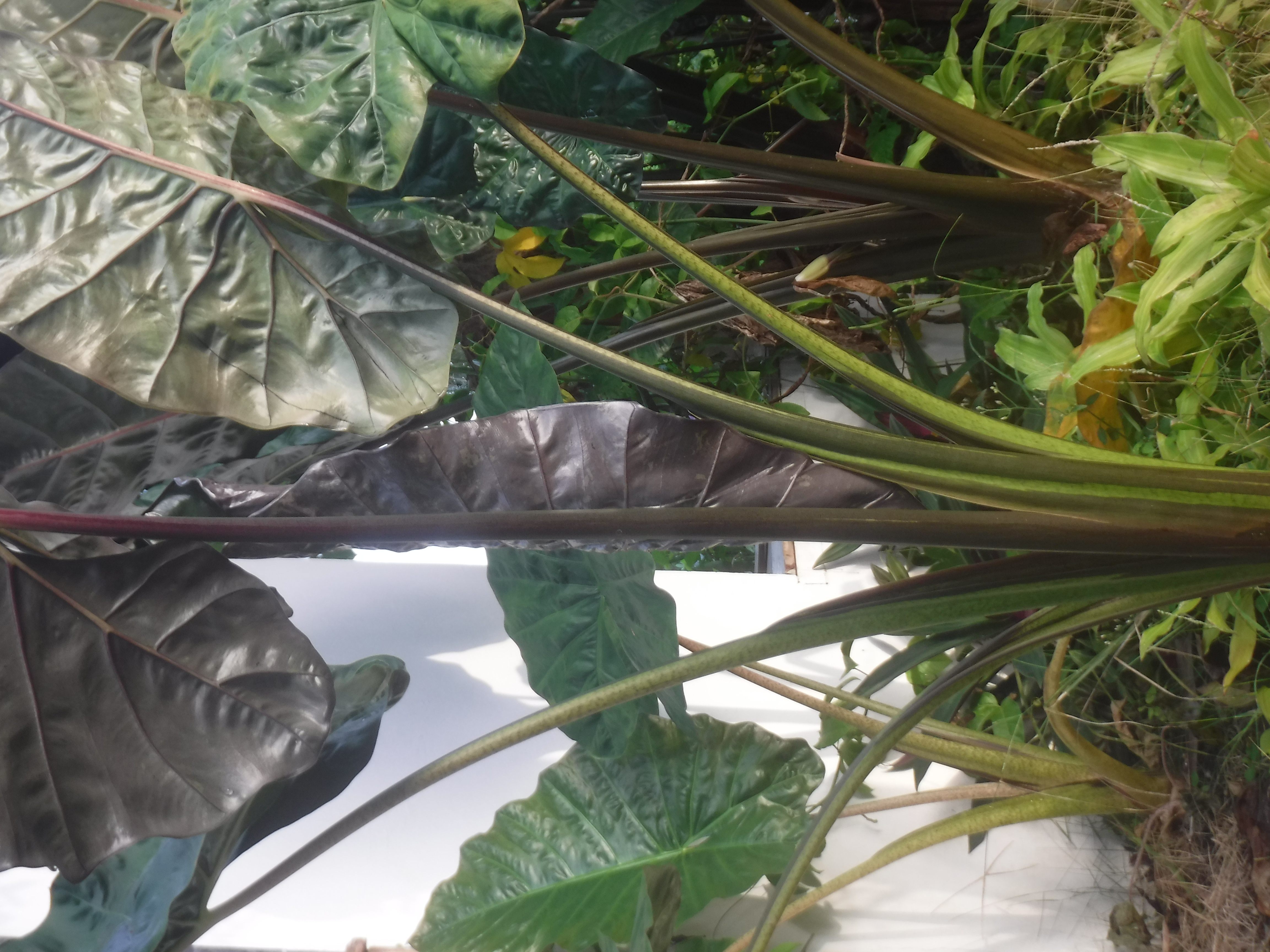 I should have known no one would know anything without a picture; gone are the days when detailed descriptions meant something. So, here is a picture of the Alocasia cv. I previously requested ID for. I think it may be A. macrorrhizos 'Violacea', but I would like a second opinion.