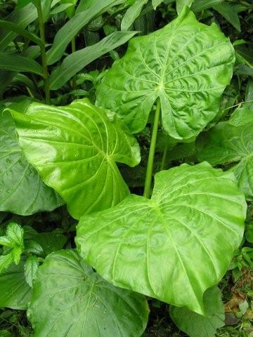 & 002), one image of Colocasia gigantea(001), and one image of Alocasia