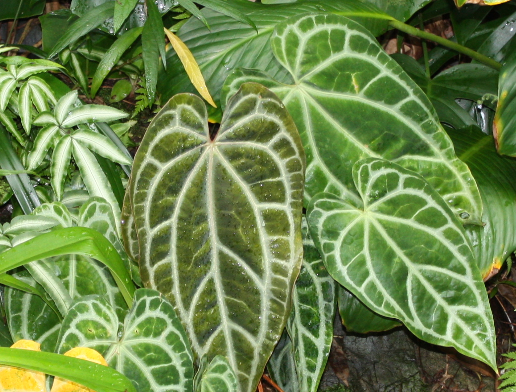 I took this picture in the Missouri Botanical Garden’s Climatron on April 24.  The picture located at the link above was a reduced size for web use.  I have cropped the Anthurium out of the full resolution image and attached it to this message so everyone can see the plant better.