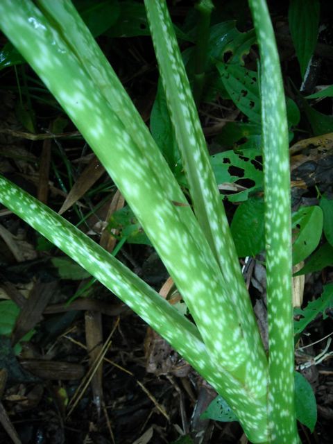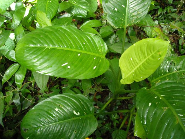 Detail of the same Dieffenbachia. They grow among other Amerindian plants like Caladiums etc.
