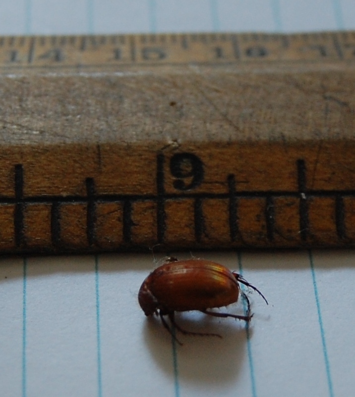 .Attached is what I hope is a larger photo of the beetle. Let me know. The beetle is small - less than 3/8 inch long. Since the beetle feeds at night there are none in the damage photo. The shape of the head and antennae are different from the copper viburnum leaf beetle and I have not seen any larvae. The body of "My" beetle appears to be more round so I am not leaning in that direction for ID. This thing is a real scurge. It killed bishop's weed in 2 seasons. Stripped coreopsis and calibrichoa. Now working on the asters. Feed from the ground up, sometimes leaving the tops, so there will probably be some flowering. I found this one dead in my study on the second floor of my house, others in my kitchen (one in a bowl I had left on the counter and one in the sink) and one in the bird bath. Seems it can crawl anywhere. Imagine my surprise when 2 came crawling out of pots of pelargonium I was overwintering in my hot dry apt in Feb. No damage to the pelargonium. On Fri, Aug 14, 2015 at 12:28 PM, Doug Green <gardeningemail@gmail.com> wrote: > Sally - hate to say it but the pic of the beetle is too small to be > properly identified. There are likely several options for what it could be > - so when I'm passing pics along to the entomologist for a confirmed id, we > really do look for something a bit closer. It's not at all visible in the > foliage pic. > > It did come through on the GWL list so some listmembers might be able to > give you some decent options. The settings on GWL were changed to allow > pictures btw. > > Sorry > > Doug > > On Fri, Aug 14, 2015 at 11:27 AM, Sally Williams <gardenlit@gmail.com> > wrote: > > > I finally got a photo of the small copper colored beetle that is > stripping > > foliage. I uploaded it and a photo of the damage it causes to > > http://www.simplegiftsfarm.com/insect-identification.html as suggested > by > > Doug Green. > > > > If GWL doesn't accept my attachment you can find it there. > > > > Thanks, > > Sally > > > > On Sun, Aug 2, 2015 at 4:42 PM, Doug Green <gardeningemail@gmail.com> > > wrote: > > > > > In case you don't ID it - take a good picture and upload it here > > > http://www.simplegiftsfarm.com/insect-identification.html I have an > > > entomologist who identifies insects for readers. Just follow the > > > directions and we'll get you a positive id There are also over a 1000 > > > images of identified insects sorted by color. > > > > > > Doug > > > > > > On Sun, Aug 2, 2015 at 4:23 PM, Dan Clost <dan.clost@gmail.com> wrote: > > > > > > > is it a Japanese beetle? > > > > coppery coloured body, emerald green head > > > > voracious, eats everything > > > > seems to fit your description, google an image > > > > > > > > > > Doug Green > > > Head Weeder, Head Wordsmith > > > http://www.douggreensgarden.com/about.html < > > http://www.simplegiftsfarm.com > > > > > > > _______________________________________________ > > > gardenwriters mailing list > > > gardenwriters@lists.ibiblio.org > > > http://lists.ibiblio.org/mailman/listinfo/gardenwriters > > > GWL list website http://www.ibiblio.org/gardenwriters > > > GWL has searchable message archives at: > > > http://www.hort.net/lists/gardenwriters > > > If you have photos for GWL, send them to gwlphotos@hort.net and they > can > > > be viewed at http://www.hort.net/lists/gwlphotos > > > > > > > > > > > -- > > Sally Williams > > 1593 Pequawket Trail > > PO Box 105 > > Hiram ME 04041 > > 207-625-4762 > > > > "What dreadful hot weather we have! It keeps me in a continual state of > > inelegance," > > Jane Austen, Sept. 1796. > > > > _______________________________________________ > > gardenwriters mailing list > > gardenwriters@lists.ibiblio.org > > http://lists.ibiblio.org/mailman/listinfo/gardenwriters > > GWL list website http://www.ibiblio.org/gardenwriters > > GWL has searchable message archives at: > > http://www.hort.net/lists/gardenwriters > > If you have photos for GWL, send them to gwlphotos@hort.net and they can > > be viewed at http://www.hort.net/lists/gwlphotos > > > > > > -- > > Doug Green > Head Weeder, Head Wordsmith > http://www.douggreensgarden.com/about.html <http://www.simplegiftsfarm.com > > > _______________________________________________ > gardenwriters mailing list > gardenwriters@lists.ibiblio.org > http://lists.ibiblio.org/mailman/listinfo/gardenwriters > GWL list website http://www.ibiblio.org/gardenwriters > GWL has searchable message archives at: > http://www.hort.net/lists/gardenwriters > If you have photos for GWL, send them to gwlphotos@hort.net and they can > be viewed at http://www.hort.net/lists/gwlphotos > -- Sally Williams 1593 Pequawket Trail PO Box 105 Hiram ME 04041 207-625-4762 "What dreadful hot weather we have! It keeps me in a continual state of inelegance," Jane Austen, Sept. 1796.