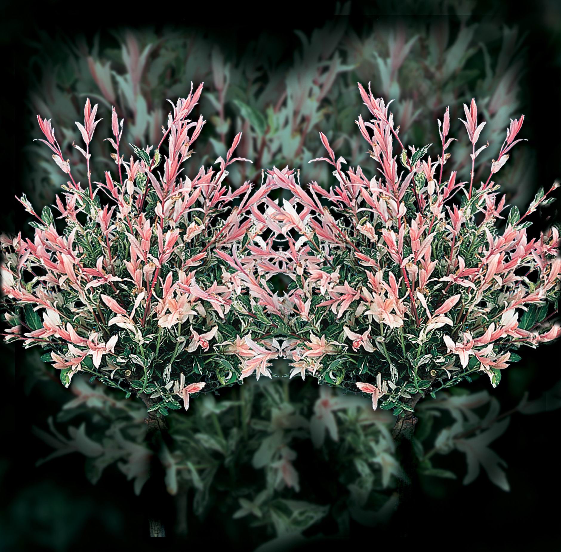 Plants Inc. Salix integra ' Flamingo' Spectacular deep red variegated Salix that can be pruned several times during the growing season to produce new shoots that make the plant more compact for the desired stem length. First