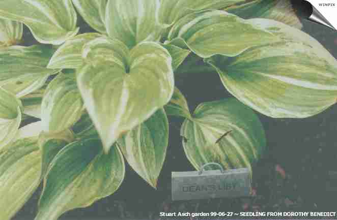 DIGITAL IMAGE TESTING ...here's a pix of one of those useless UNREGISTERED hosta'cusses, which ain't gonna be able to participate at AHS National Convention after 2001, if it ain't registered yet ..see file-name "sa dean's list.jpg" attached. ...this one is a Stuart Asch hybrid outta Dorothy Benedict (striated form), which he calls DEAN'S LIST, but she ain't registered nope. Image screen-size per width & height = 662 pixels by 433 pixels X and Y dpi = 75 Size in memory when loaded = 984 KB File-name saved to disk SIZE = 15 KB :-L)) Lucy Canon aka...the'SHADOW'gardener