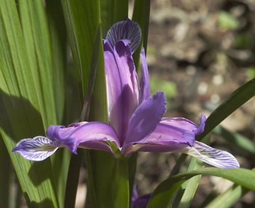 The dwarf spuria, Iris graminea, has finally bloomed for me after a wait of several