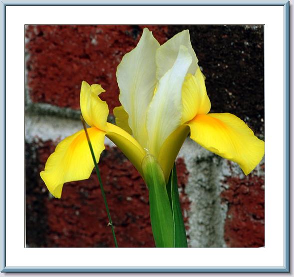 That's one of my favorite Dutch Iris. Mine isn't open yet. Sorry it is a little fuzzy, will try to make another photo tomorrow. OC almost missed seeing it, because it was up against the side of the house and he had already taken the Camera off the tripod. Saw it and just had to shoot and he knows not to try to shoot hand held