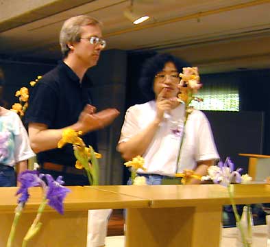 A photo of Sandy Ives and Maureen Mark judging at the Canadian Iris Show on