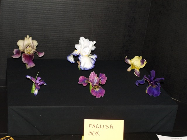 We had one English Box at our Iris Show (had iris not all of the same type) and it was called “Classes of Iris” - photo attached. It was brought up after the show that the AIS website says this: "Five or six irises, all the same type (TB, SDB, Siberian, etc.) are displayed in the box and must be correctly identified by name. Use a 3" X 5" card for this and place card on box at center edge. If only five irises are displayed, place card over sixth vial. Follow closely, any requirements written in the Show Schedule. Keep iris sizes similar, unless otherwise required, and pay attention to color coordination.” Is this a hard and fast rule, or can an iris grower do any theme they choose and any selection of iris to go along with the theme, as long as the show chair approves? Just wanted some clarification for next year. Since we rarely see an English Box in our shows, perhaps the rules have been relaxed to encourage more of these exhibits. Thanks, Peggy Harger-Allen Zone 5 ![]() |