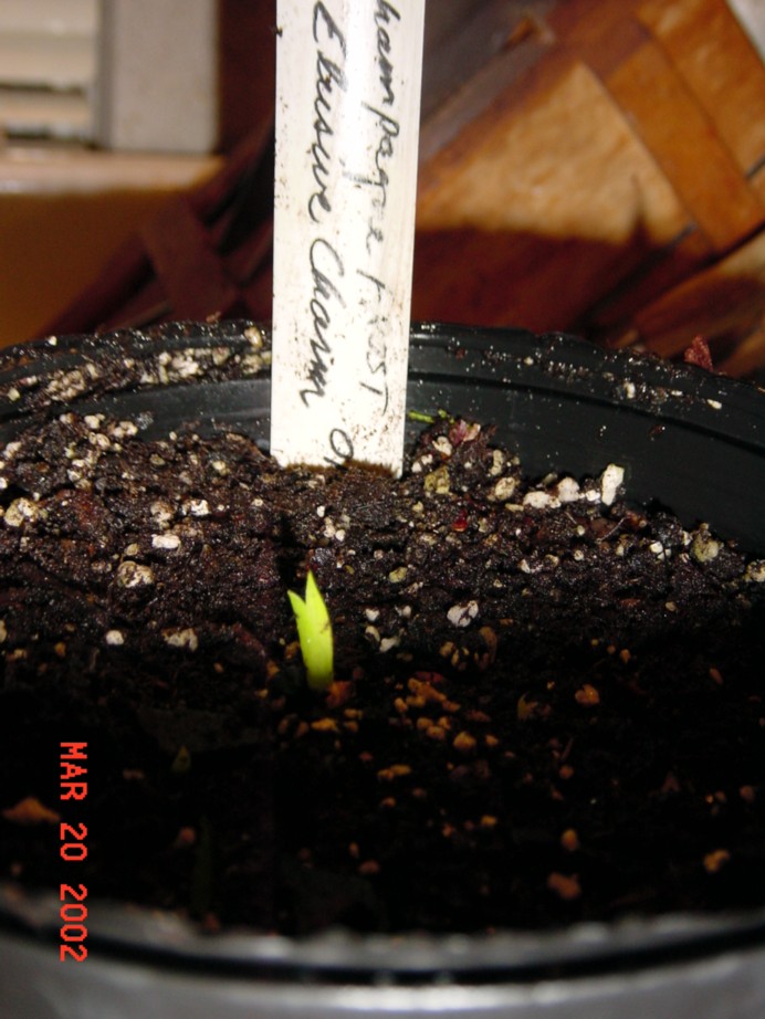 seedling appeared today! Planted Jan 15th (late by conventional wisdom). 83