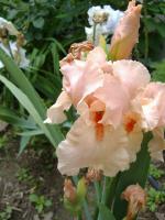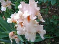 The last two photos actually show the color the closest to acurate. In the sun it appears more orange but today is a cloudy day & the pink is more prominate than usual. As I said this is a 'bin' iris I think since I have lost the tag...Whatever it is, it is very healthy and growing well so if I do not find out its name then I will just have to enjoy it as an Unknown.