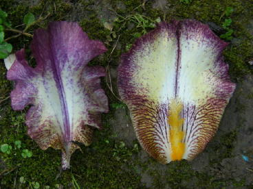 Very happy with this one! This flower is 3 days old and looks even better than when it opened. The falls were down but gradually went up the second day, and are horizontal now. The line in the middle of the fall is very strong.