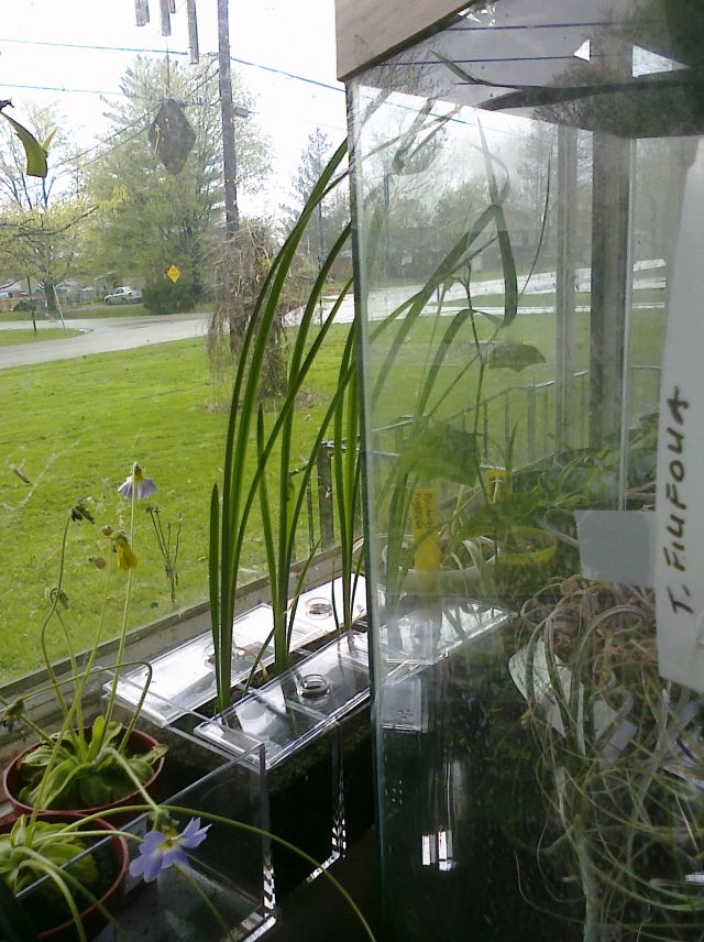 Last year I got into carnivorous plants when I learned Sarracenia pitcher plants are cold hardy in Ohio. They are strikingly similar to irises in the way they grow: leaf production, rhizomatous, vegetative increases, bloom time, seed stratification requirements, years to reach maturity, etc. And I've been reading the various techniques Sarracenia hybridizers use to reduce the maturation time of young seedlings. One technique is to grow them under fluorescent lights 24/7/365, and it works! Once they're mature though, they need the day/night winter/summer cycles to retain their vigor.