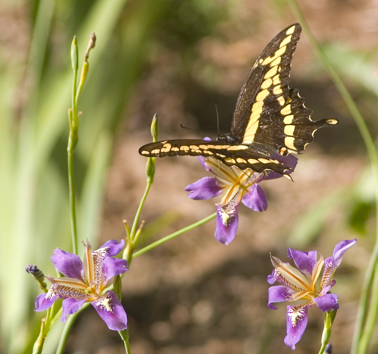 Nice photo! I think I've posted this one before, but it still amuses me. A giant swallowtail (Papilio cresphontes) nectaring on I. dichotoma in my garden. Probably not an appropriate pollinator! Sean Z Zone 6a SE Michigan