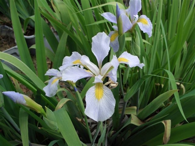 The photo and discussion of Iris virginica alba reminds me of an Iris virginica that I collected from the Honey Island Swamp area of the Pearl River Basin in Louisiana and which I have christened I. virginica ‘WetPearl.’ The pastel lavender blooms have large yellow signals and have relatively wide falls and standards as compared to normal wild I. virginica types. It is very floriferous and makes a nice garden display with the blooms held above the foliage. The falls range from approximately 1½ to 2 inches wide and approximately 3 inches long. The standards are approximately 1½ inches wide and 2½ long. The blooms overall are in the neighborhood of 6 inches wide. I might have posted these photos previously; if so please excuse the repetition. Vic |