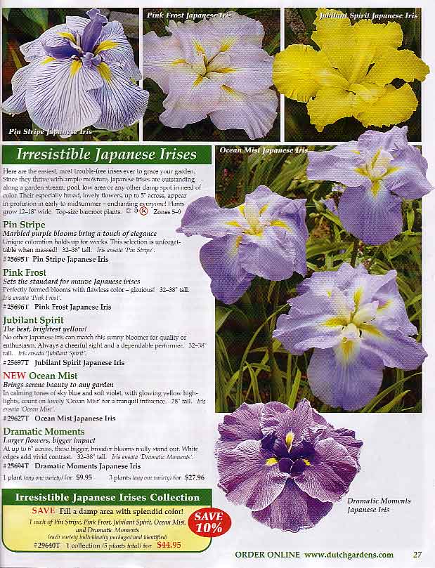 Here is another fine example. An entire page devoted to Iris ensata. Oops, that yellow Jubliant Spirit sure looks out of place. I don't recognize the cultivar , but believe that is a Louisiana hybrid. The others do appear to be named correctly, most are 40 to 50 years old.