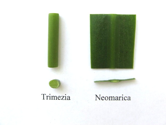 Hi All, Here is a side by side comparison of sections of scapes from that Trimezia and Neomarica candida. BTW - Maurice Boussard says the correct species for the common Trimezia is steyermarkii. Rod |