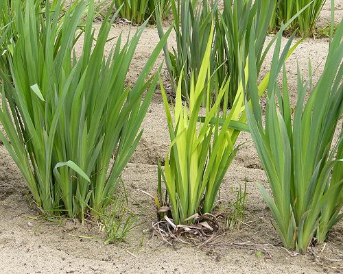 non-variegated clumps. Pseudacorus irises grow as vigorously as