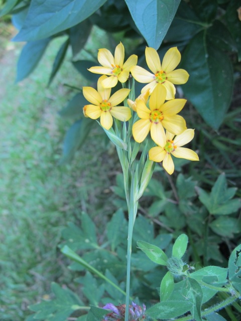 It survived last Winter in the ground here in Kansas City. The flowers are only one inch across but as you can see they make a nice bouquet. The leaves are one foot tall but the scape is at least two and a half feet tall. This is native to Argentina and Brazil, it probably won't make it through a bad Winter. We have just the one so I don't know if it will set seed. The flowers open in the afternoon and are closed by morning. ![]() Sisyrinchium palmifolium ![]() Sisyrinchium palmifolium |