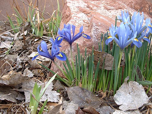> George. I. reticulata var Harmony, Cantab, and Purple Gem are blooming