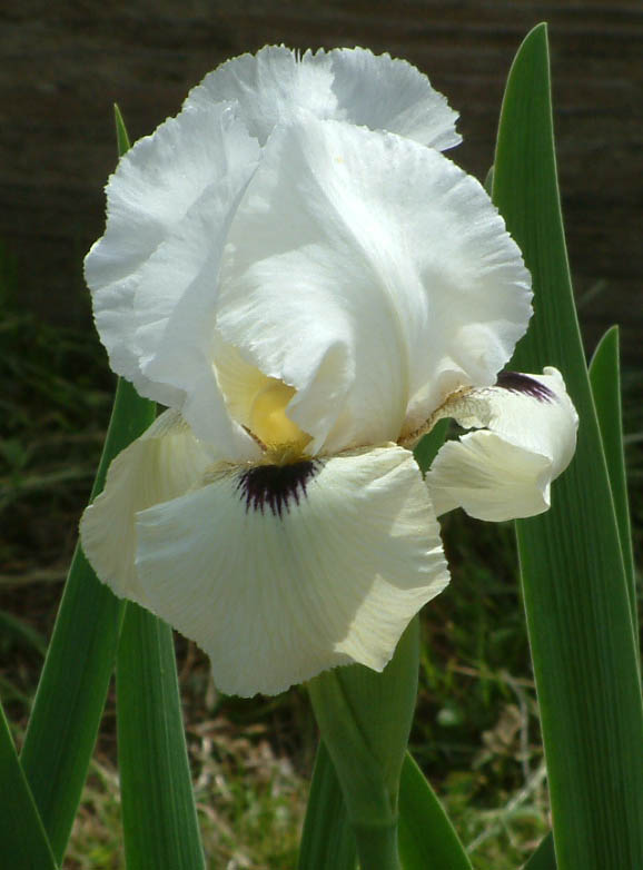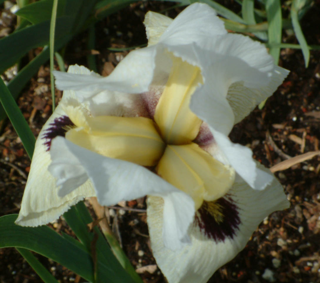 I have never grown arilbreds before this year; I made a raised bed and planted some last autumn. Many buds, but the first to open was "Zerzura". It's actually even prettier than the photos -- the standards are white, the falls cream colored with a black signal, and the style arms are yellow.