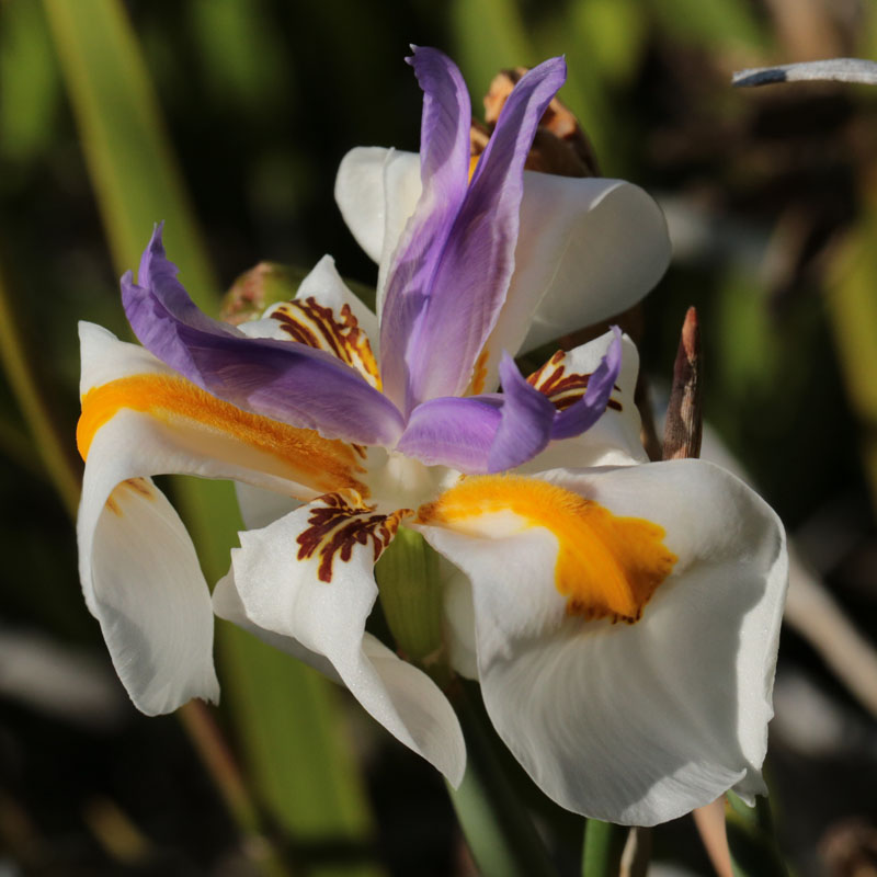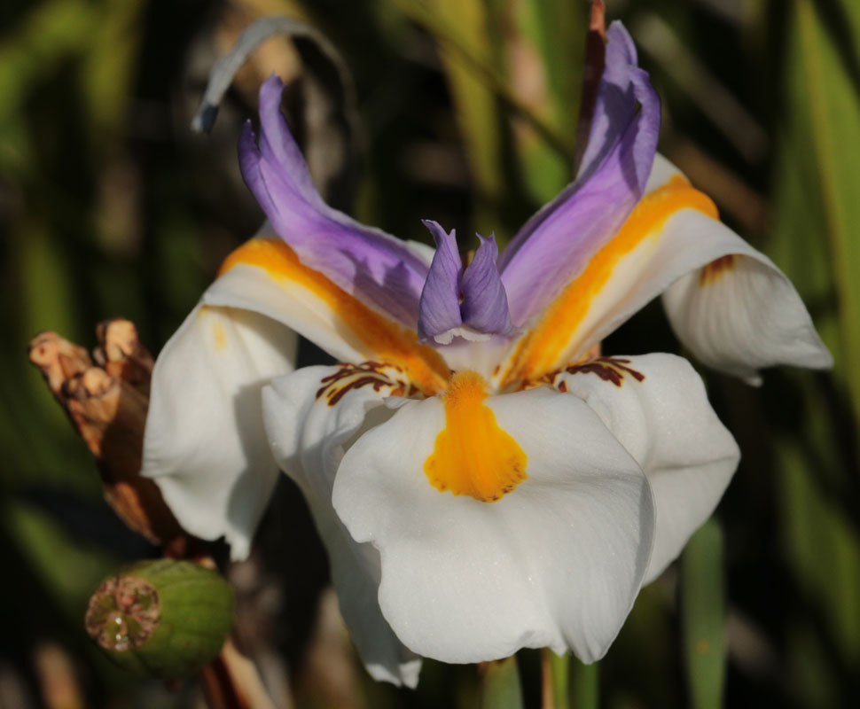 Dietes in bloom; photos attached. I couldn't see a label. I