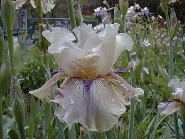 Ken, I can't believe your JIs and pseuds are blooming already... let alone done! Mine are weeks away! Usually the very end of May or more likely in early June. Help! I'm trying to deduce the parentage of a cross I made 14 yrs ago. I'd like another opinion from someone/anyone with Iris hybridizing expertise. Could this seedling be a cross of "Alien Mist" and "Thornbird"? I lost track of the actual cross records. So I'm looking through my notes trying to narrow it down. These seedlings exhibit minor spage agey-ness. I've concluded one of the parents is likely to be Alien Mist. But I'm iffy on the other being Thornbird. Somehow I would have expected the flounces to be bigger. But colorwise, Thornbird seems the most likely candidate. My other crosses with Alien Mist were with arilbreds. These flowers don't look very arilbred-y, however the rhizomes do. I'm perplexed. Sorry this is a bit OT for Iris-Species. I applied pollen from this flower onto Iris tectorum alba, so if today's cross takes, I'd like to know who the grandparents were. :-)