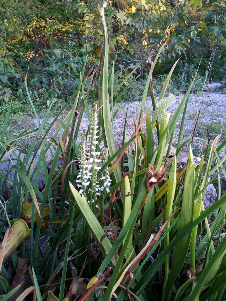 Center = Spiranthes cernua 'Chadds Ford' (laddies' tresses orchid)