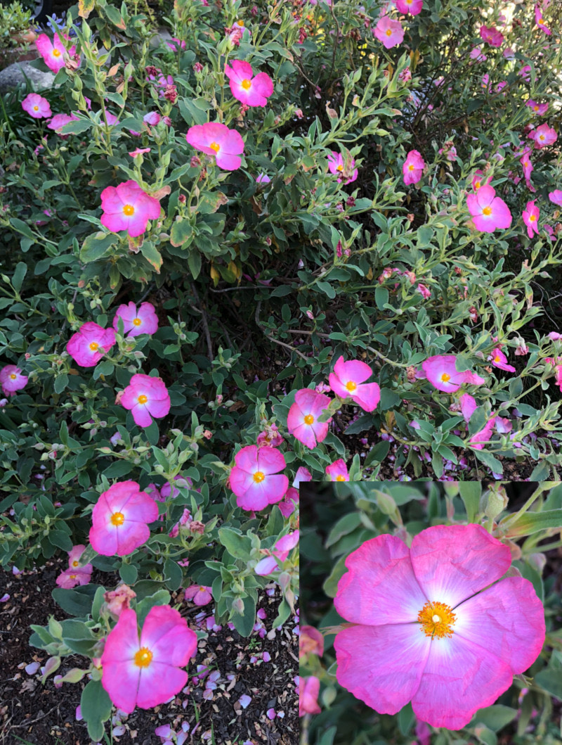 I saw these flowers recently and thought they were roses but on closer inspection the do not look correct. The leaves now look like a rock rose but the flower color is unlike any I’ve seen. Maybe something else entirely?
